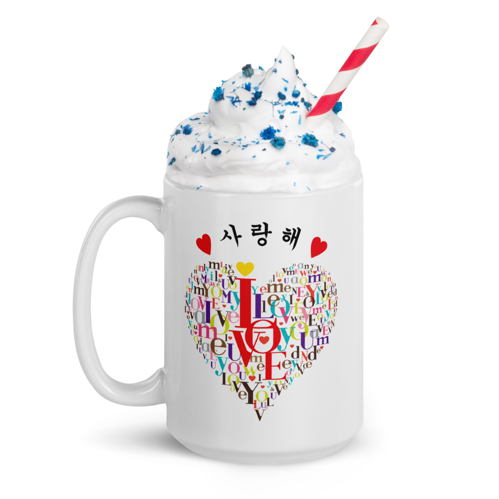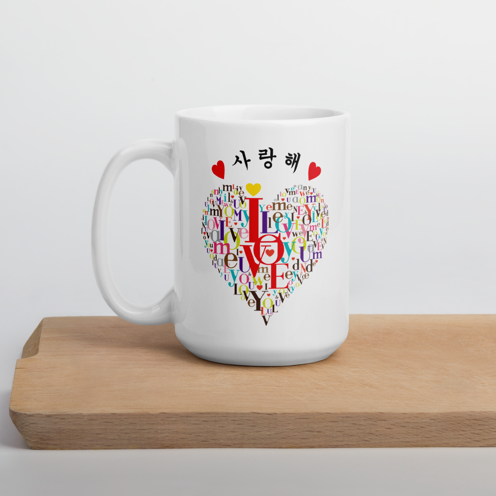 - ▶▶UNIQUE DESIGN: Our love mug has a unique heart-shaped word cloud design. The tag cloud is composed of love-related words in a multitude of bright colors. The words “I love you” in Korean are a unique touch. On the back of the tea mug, you will find a beautiful love quote.
